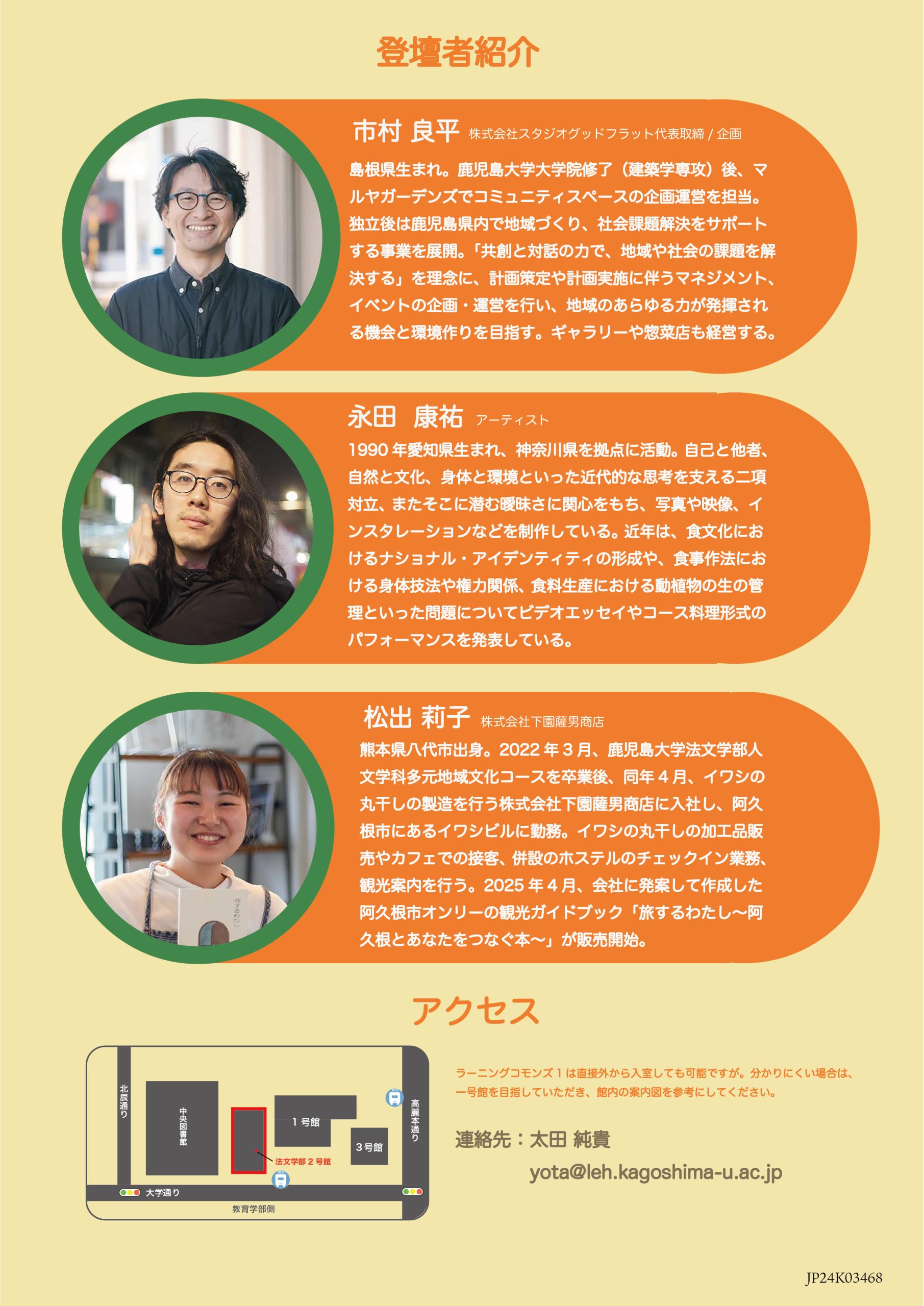 本トークイベントは鹿児島大学 令和7年度地域マネジメント教育研究プロジェクト 「地域の文化の可能性を伝統工芸・アート・イラスト・食・本を焦点に探索するプロジェクト」の一環です。またJSPS科研費JP24K03468より助成を受けています。