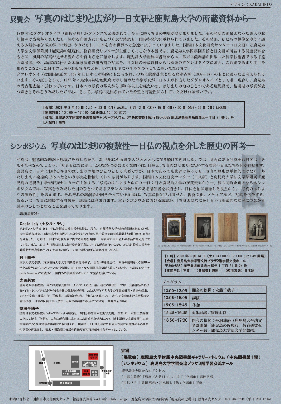 シンポジウム:2026/03/14 13:00~17:00「写真のはじまりの複数性」@鹿児島大学学習交流プラザ2F 学習交流ホール